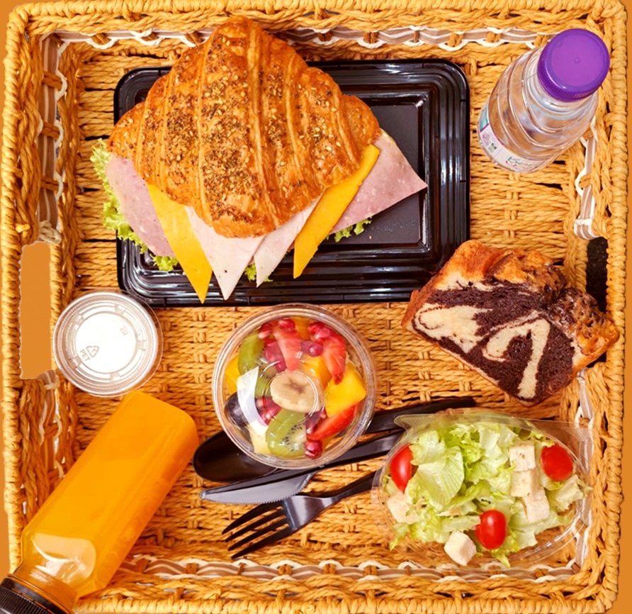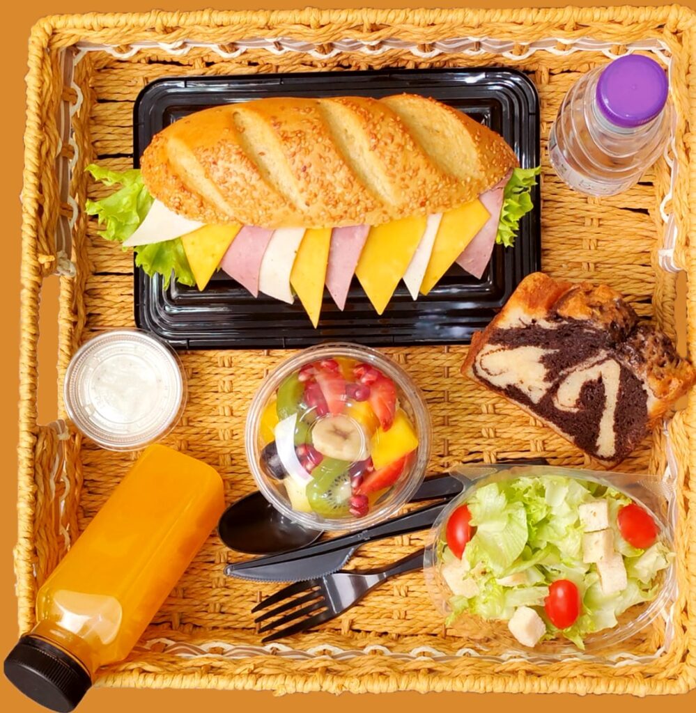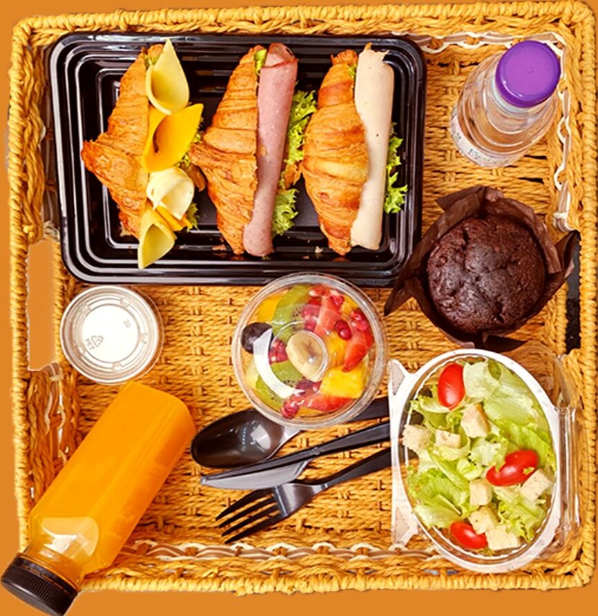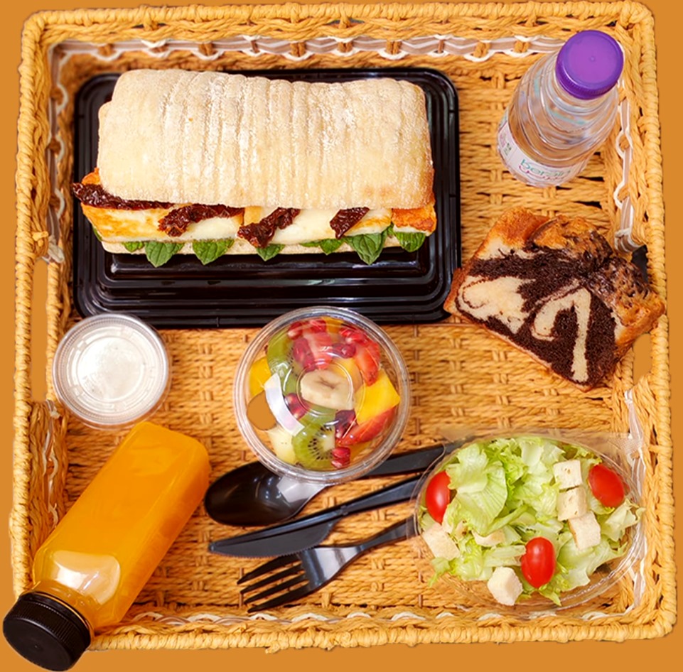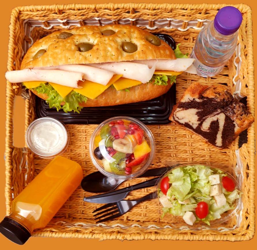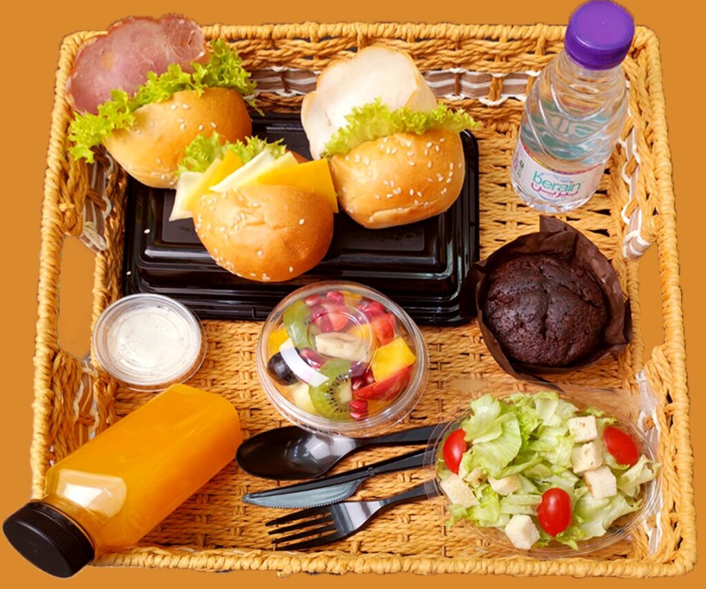 بالاضافه سطه سيزر وماء و عصير فريش + انجلش كيك او فروت سلاط او مافن كيك